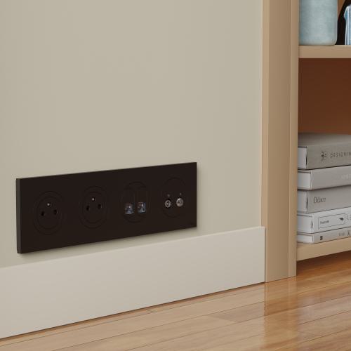 Odace plaque 4 postes noir